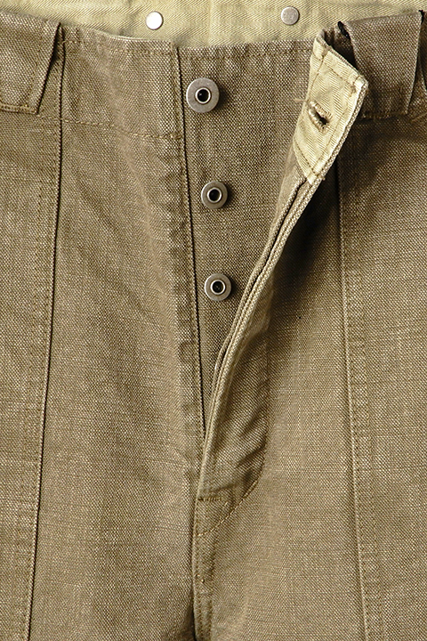 1950年代のスイス山岳部隊、1940年代のスウェーデン山岳部隊のヴィンテージミリタリーパンツがデザインのベース。生地はロジスティックジャケットとメールバッグと同じダック生地になります。
