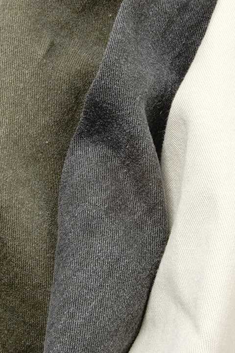 ナイジェルケーボン製品の多くが、洗い加工、染色加工、仕上げの工程において特殊なテクニックを使用しているため、1点1点が他とは異なり、またサイズ、色が1点ごとに多少異なることがあります。 それらは、経年変化としてお楽しみいただければ幸いです。
