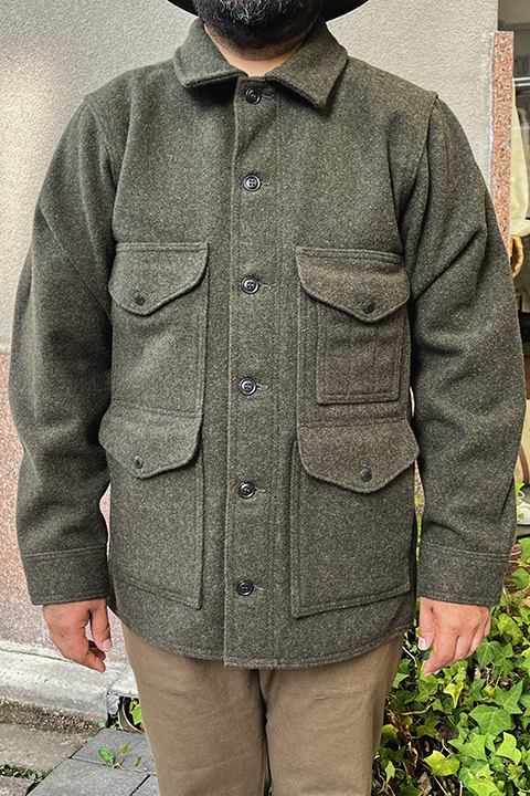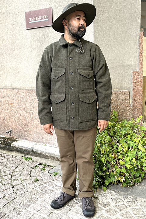 MACKINAW WOOL CRUISER JACKETは防寒性に優れており、天候の変化に関係なく着用したいときに、その性能を如何なく発揮します。耐久性に優れたバージンウールは、非常にタイトな織り方で、通気性を保ちつつも、外部からの風をシャットアウトします。Mackinaw Woolはその複雑な繊維構造により、湿った状態でも乾いた状態でも保温性があり、湿気を感じることなく自重の30%までの水分を吸収します。フロントに4つのフラップ付きポケット、背中全体を覆う幅の広いポケットを備え、2層のウールが胴体の大部分を覆う、秋から次の春までの3シーズンの利用を想定されたアウターです。 1914年に特許を取得したフィルソンのクルーザーは、雨の多い太平洋岸北西部の森で働く林業家やティンバー・クルーザーのためにデザインされました。当初はプルオーバーのシャツとして、はたまたボタンフロントのジャケットとして提供されたクルーザーは、瞬く間に市場で最も模倣されるジャケットのひとつとなった。その汎用性の高さはハンターやアングラーにも評価されるようになった。1940年代にはNPS,USFSの公式ユニフォームとして、フィルソンはクルーザーのカスタムデザインとファブリックのバリエーションを生産していました。 それから1世紀以上経った今でも、MACKINAW WOOL CRUISER JACKETは、林業家やハンターをはじめ、さまざまなコンディションで高い耐久性と耐候性を発揮するジャケットを求めるすべての人々に、アウトドアでの多用途性で高く評価されています。 当時も今も変わらない。伝説的な正に「森のタキシード」です。