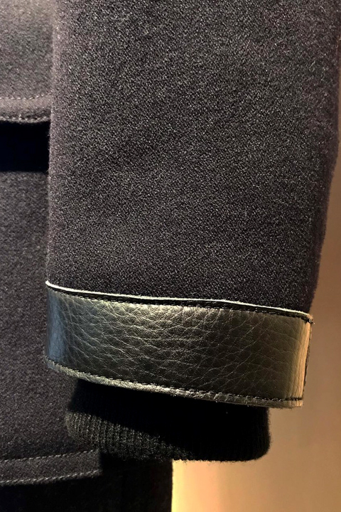 艦橋や甲板などの厳しい気象条件で使用することから、防風、防寒のための大振りなチンストラップが備えられ、風向により左右どちらでも上前を変えることが可能となっており、冷えた手を温めるために縦に切り込みを入れたマフ・ポケットが付いています。