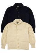 アイルランドの伝統的なアランニットとフレンチヴィンテージのディテールにインスパイアされたショールカラーカーディガン。力強い網目と素朴なウッドボタンとの調和がナイジェルケーボンらしい一着です。