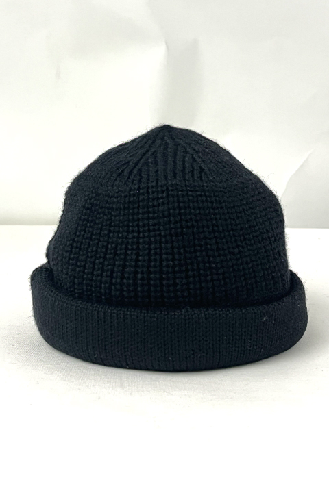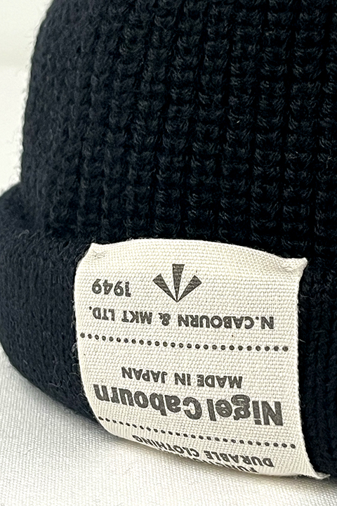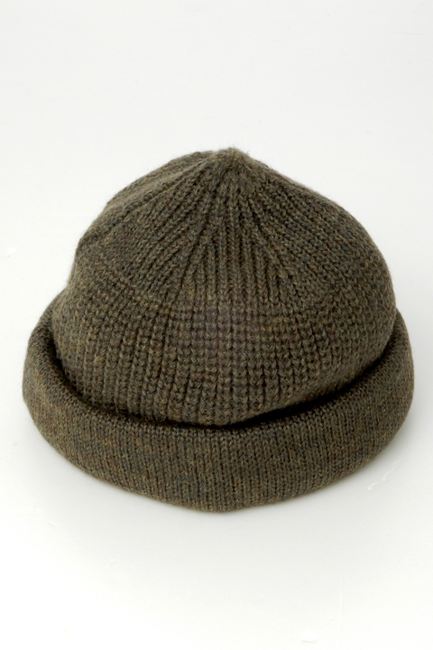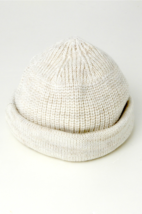 梳毛糸(コーミングと言われる馴らし作業をしている糸)を使って織り込んだビーニーです。独特で上品な光沢の質感に仕上がっております。