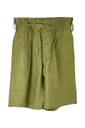 ナイジェルケーボンの父が英国陸軍としてビルマ、インドで運用した時代のフィールドパンツがデザインのベース。亜熱帯地域に対応するべく作られたリネンバスケットウィーブを採用しました。組織は平織りの強度UPされた生地のショーツです。ボタンはココナッツから削り出したもの。