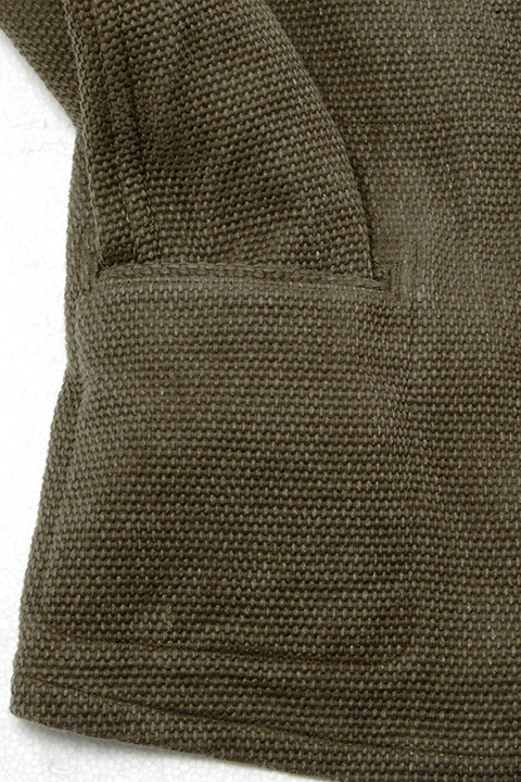 オックスドシルバーシリーズの一つファイアーマン(消防士)が着用していたジャケットを元にデザインされています。刺し子組織で有名なのは武道着で太刺し子生地は体を守る最前線で働く方々を守るために今でも使われています。麻でもシルキーなヘンプを使用しているので使えば使うほど馴染んでいきます。その経年変化は購入した方のみ知ることができます。ヘンプデニム、ヘンプキャンバスの特性を一つにしたような質感です。刺し子の組織の為肌に点で当たるので真夏以外着用できます(店長ジャストサイズ48)