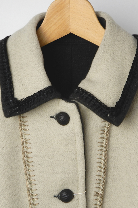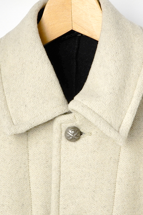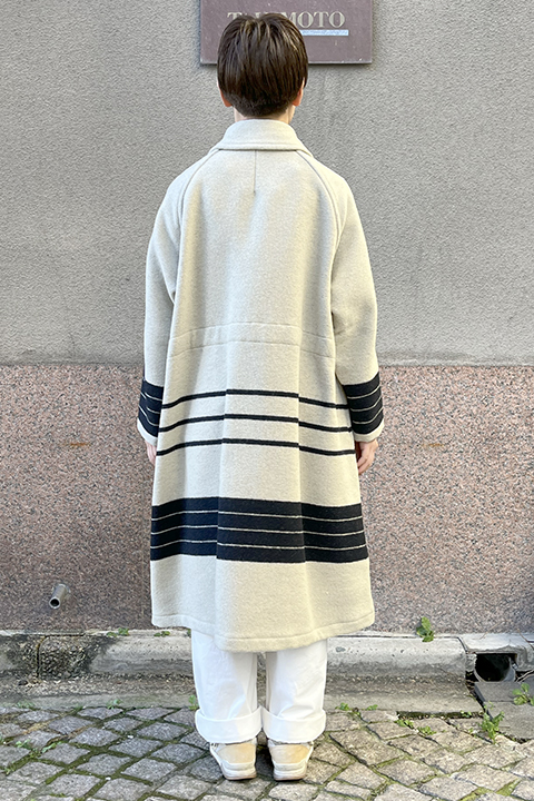 ※着用写真は2番色アイボリーの表側、1番色チャコールの表側です。各色裏側の着用画像はメンズのブランケットコートをご参照ください。