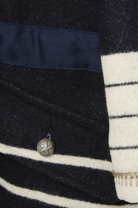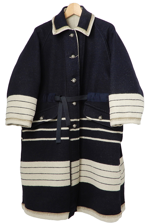 マウンテニアシリーズの一つブランケットコートです。リバーシブル仕様で逆のパターンの配色になります。ウールなので温かく袖裏など付いていないので軽く年齢を問わずお使いいただけます。