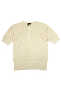 ビンテージデザインをベースに、コットン100%のスラブ糸を使用し丸胴天竺に編み上げたヘンリーネックシャツ。胴部分に縫い目がない為肌にストレスが少なく、柔らかな着用感が特徴。 第2次大戦の影響下で深刻な物資不足に陥った英国では「質素・倹約」がモットーとして定着しました。それに伴い、下着も含めた衣料品のデザインも必要最低限の機能を備えたミニマルなものに変化しました。1941年~1950年にこれらに付与されたCC41(Civilian Clothing=民間衣料)のラベルデザインを彷彿とさせるCC22ラベルを携え、本質と無駄のない機能美を追求する現代人の為のクロージングラインへと昇華させました。顔料染め仕様。(店長ジャストサイズ50)