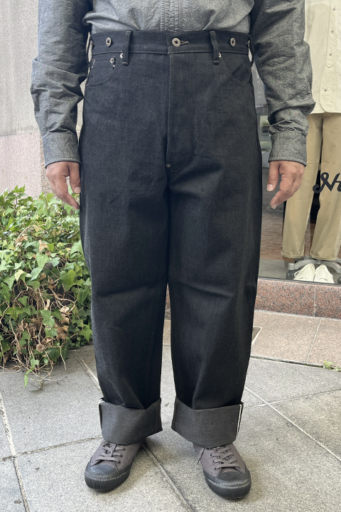1900年代初頭、鉄道員に愛用されたビンテージデニムをベースにしています。 股上が深く、すそ幅が広い、ワイドタイプのデニムです。