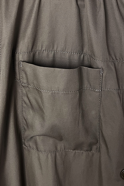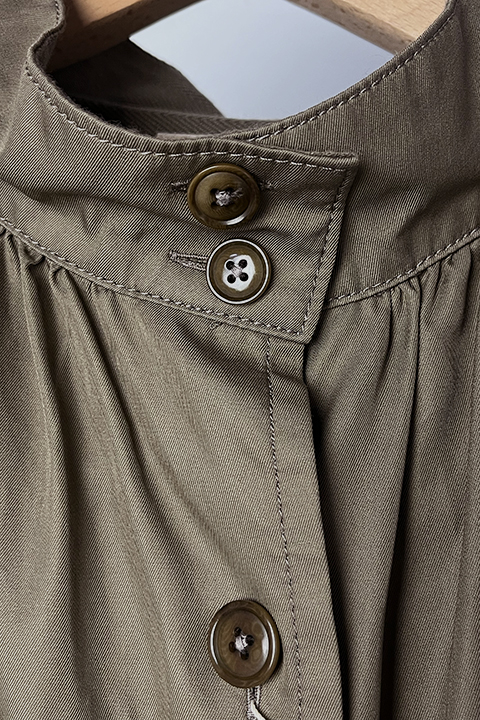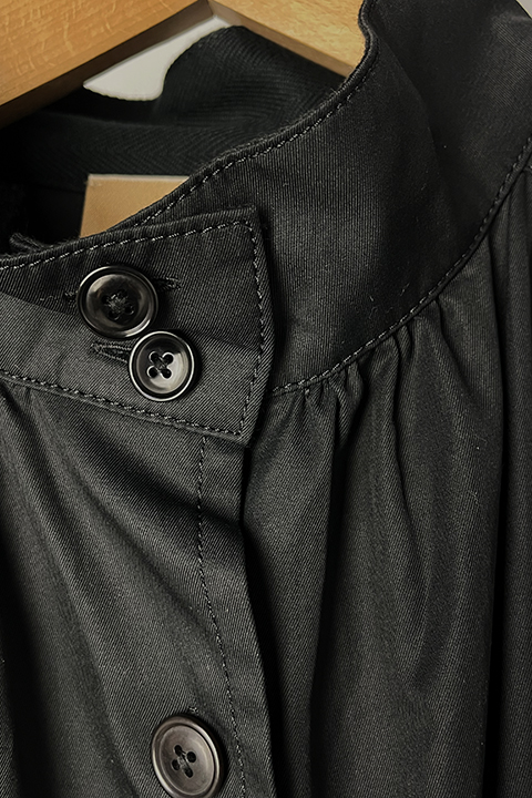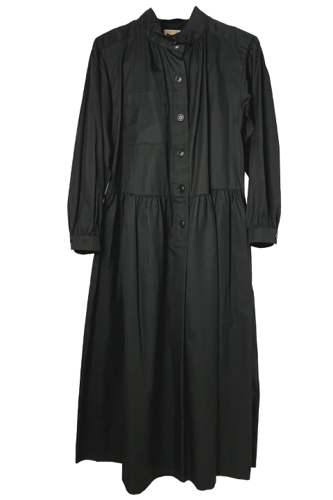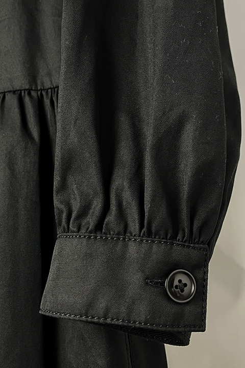 古典的なディテールとシルエットをモダンで機能的なデザインに落とし込んだ、シンプルかつ存在感あふれるワンピース。適度なハリとツヤ感のある肌当たり柔らかなコットンギャバジンを使用しています。