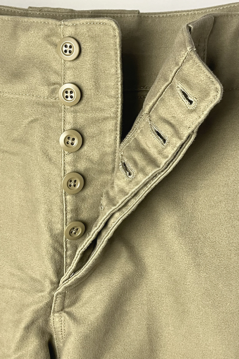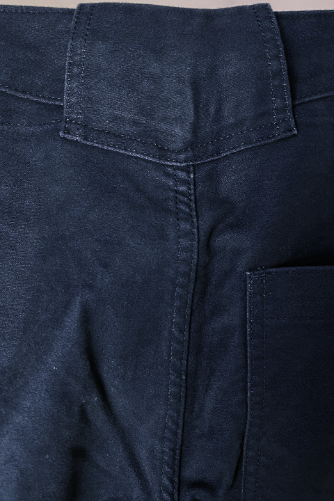 コットンモールスキン生地のワークパンツ。ライトなモールスキンとは違いしっかりしている恩恵で綺麗なラインが出るのが魅力の一つです。安心して着用でき印象も非常に安定します。