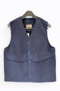 コットンモールスキン生地のワークベスト。ライトなモールスキンとは違いしっかりしている恩恵で綺麗なラインが出るのが魅力の一つです。安心して着用でき印象も非常に安定します。