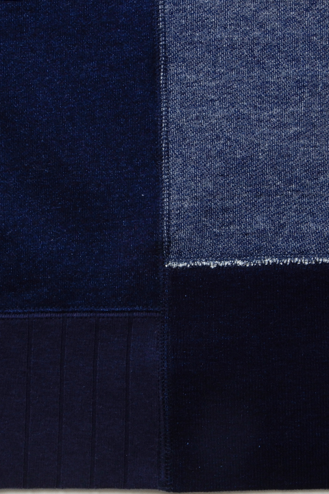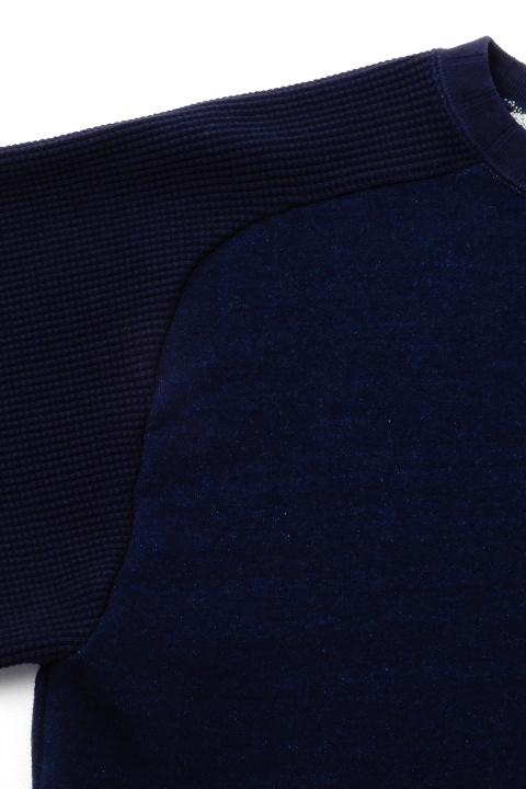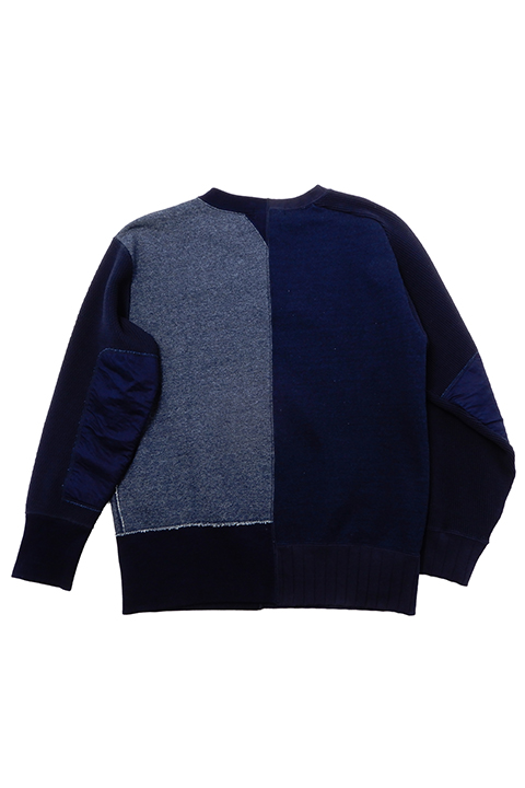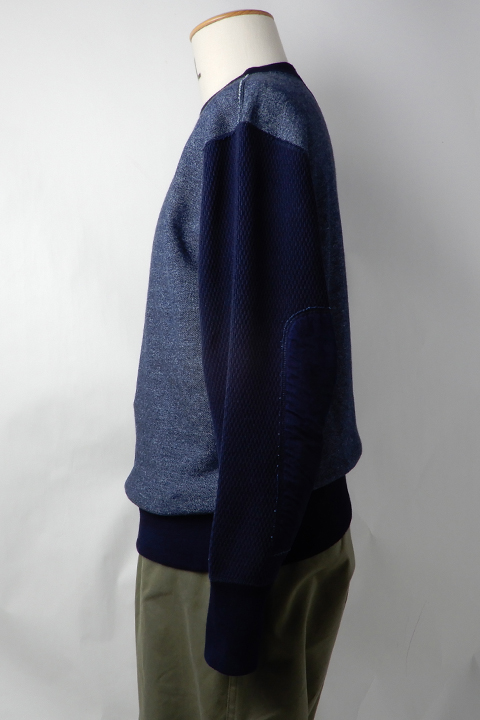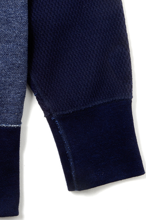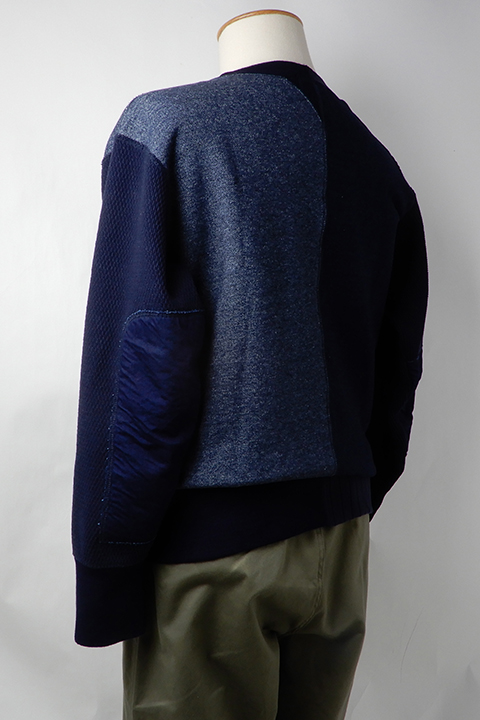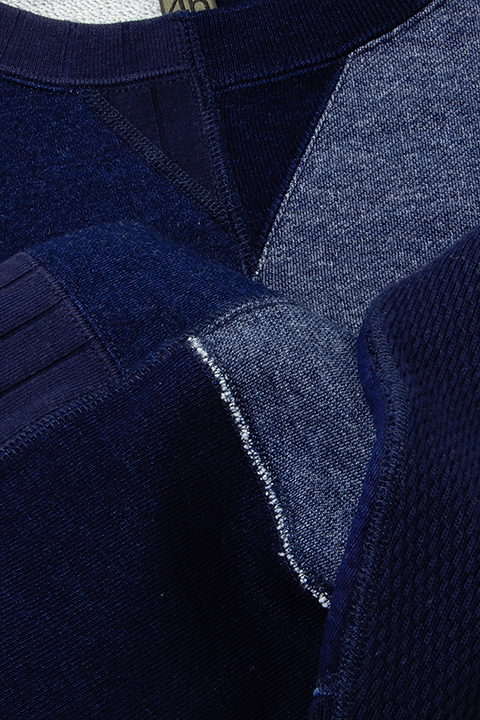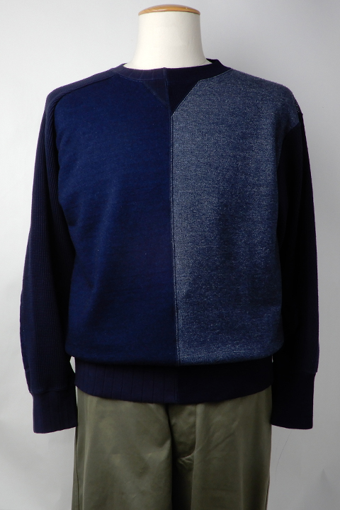 イギリス陸軍で運用されていたトレーニングウェアをベースにしています。 右身頃は1930年代、左は1940年代と異なる年代、異なる仕様を合わせ、アシンメトリーに構成されたウェアです。右側の30年代にはオリジナルに使われていたとおり、フラットシーマという布の重なりを極力なくしてパーツをつなぎ合わせるミシンを、左側の40年代にはロックミシンを使用しています。 製法、プロダクトにこだわりをもつナイジェルならではの逸品です。