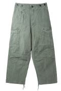 アメリカ軍のM51をベースに、プリーツの入ったマチ付きポケットなどイギリス軍のディティールを取り入れたデザインのカーゴパンツです。生地はコットンリップストップで顔料染め仕様。新品の状態ではパリッとしていますが徐々にシルキーにもなります。春夏にはとても快適なものに仕上がっております。グリーン・カーキ・オフホワイトの3色展開。※店長ジャストサイズ36